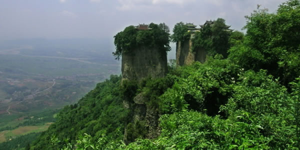 竇圌山:又名圌山,位于四川江油城北20公里的涪江東岸。又名圌山。相傳唐代彰明(今屬江油縣)主簿竇圌(字子明)隱居于此,故名。自麓至頂約5公里許,行道迂回盤(pán)旋,林木蒼翠,景色秀麗。 李白少年時(shí)曾游此山,題下千古絕句“樵夫與耕者,出入畫(huà)屏中”,后國(guó)民黨元老于右任手書(shū)鐫刻于山中石碑之上。