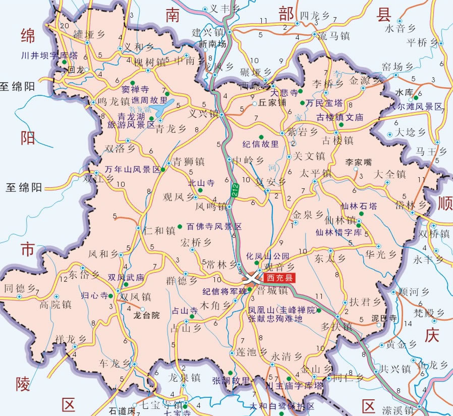 西充縣轄15個鎮(zhèn)、29個鄉(xiāng):