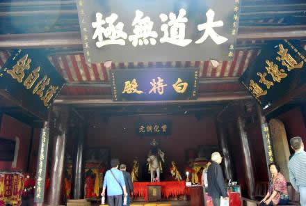風(fēng)洞樓下是白特殿!疤亍笔潜锐R還能跑的動(dòng)物,它馬頭、驢身、騾尾、牛蹄,俗稱(chēng)“四不像”,古人說(shuō)“千里馬、萬(wàn)里特”。傳說(shuō)文昌帝君的坐騎就是全身色白的特,即“白特”,明代著名小說(shuō)家馮夢(mèng)龍?jiān)珜?xiě)對(duì)聯(lián):“梓潼帝君乘白特下臨凡界,三清老子騎青牛西出函關(guān)”。這座殿堂就因白特而得名。