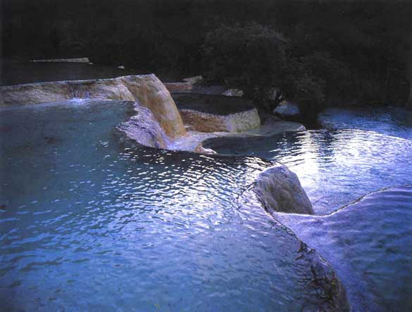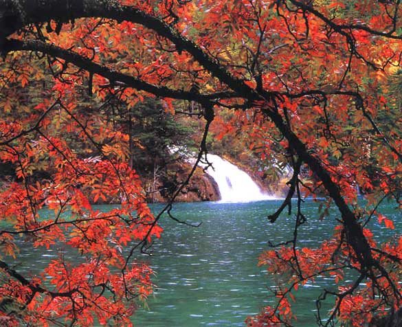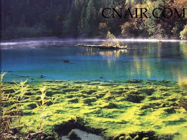 九寨溝內(nèi),清清碧水倒映藍(lán)天,魚翔蒼穹,鷹擊水底,呈現(xiàn)出謎一樣的童話世界。
