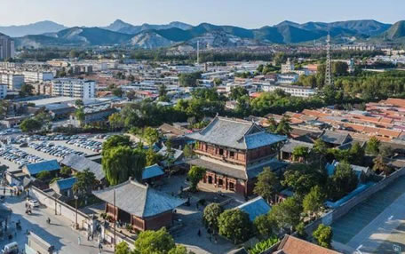 獨樂寺山門是我國現(xiàn)存最早的廡殿頂山門,山門面闊三間,進深兩間,中間做穿堂,正脊兩端的鴟吻,造型生動古樸為,遼代原物。