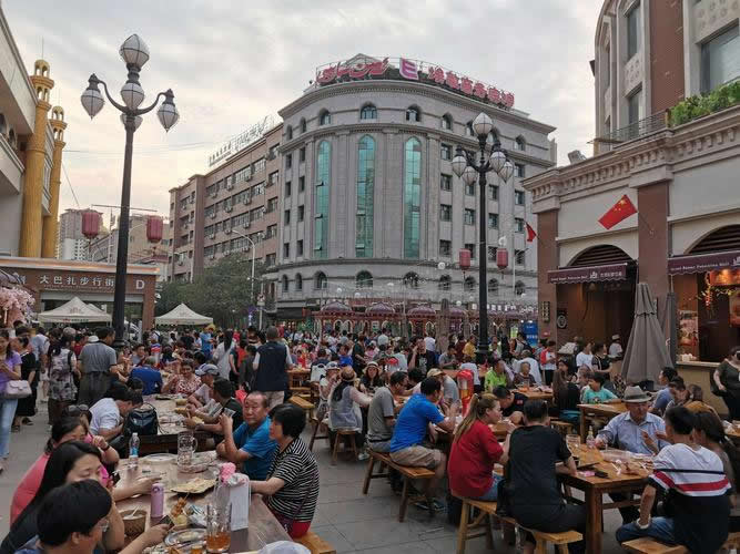 新疆國際大巴扎大型宴會廳是新疆最大的具備大型歌舞表演并同時可容納1000人用餐、以新疆民族歌舞、文化、飲食結(jié)為—體的大型歌舞宴會廳。飲食改變了傳統(tǒng)的圍餐制而采用了歐美西方的分餐形式,以新疆民間歌舞表演為主導(dǎo)飲食的觀賞性餐飲廣場。
