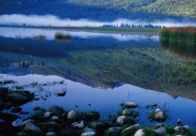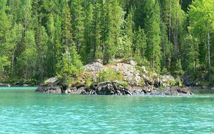 越桔島在喀納斯湖湖心島旁,有一個伸入湖中的半島,島上的林下苔蘚層長滿了獨(dú)特的越桔灌叢,人們稱其為越桔島。