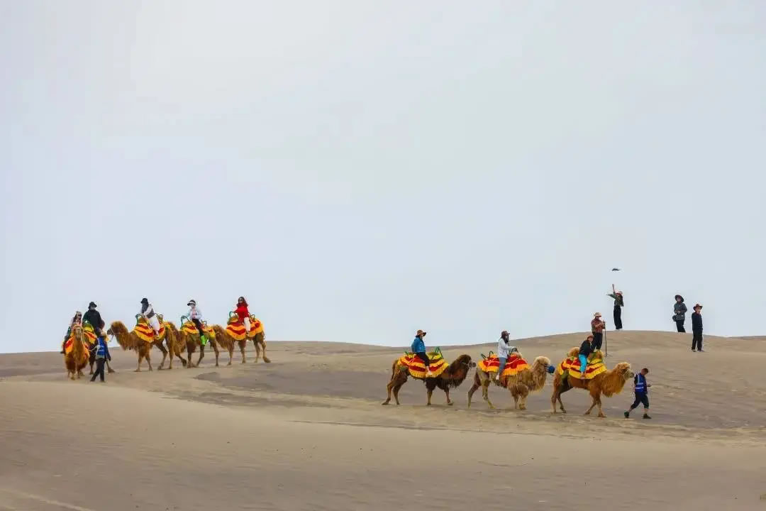 游客在木特塔爾沙漠體驗(yàn)駱駝騎行 (馬海玲 攝)