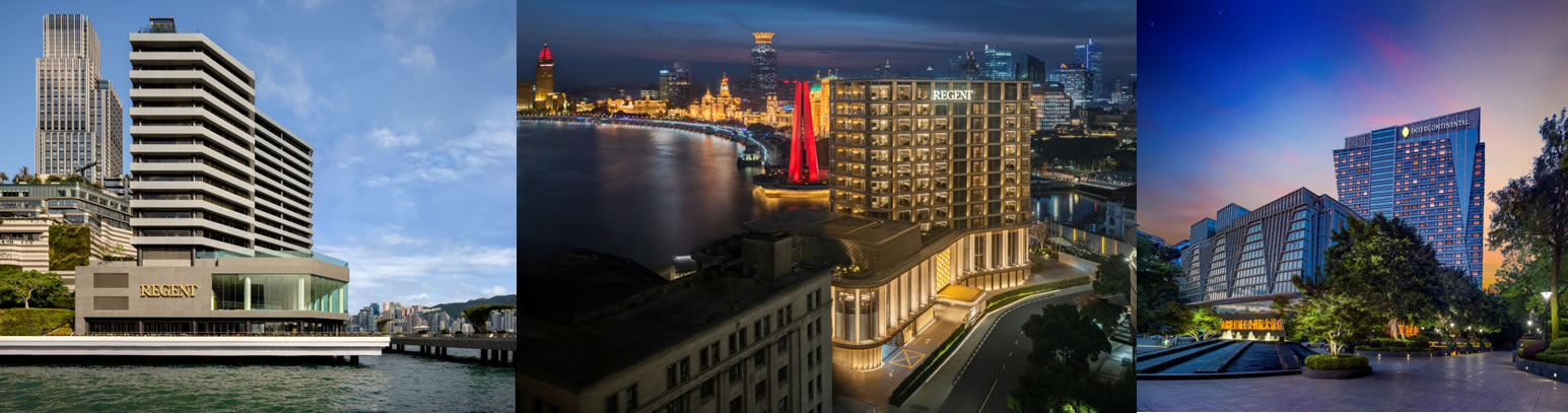 從左至右:香港麗晶酒店,上海海鷗麗晶酒店,成都世紀(jì)城天堂洲際大飯店