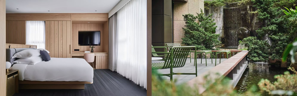 臺(tái)北金普頓大安酒店為金普頓品牌亞洲首店,位于臺(tái)北東區(qū)靜謐街巷,與購(gòu)物中心和捷運(yùn)站僅隔一街,周邊遍布文藝畫廊、精品店與人文咖啡館,雖鄰喧囂卻宛如都市靜謐方舟。129間客房與套房融合復(fù)古與白瓷層疊美學(xué),與透光天井相呼應(yīng),處處彰顯設(shè)計(jì)巧思。12樓摩登餐酒館The Tavernist為米其林指南推薦餐廳,寬敞露臺(tái)可俯瞰臺(tái)北城景與臺(tái)北101。酒店設(shè)施完善,包括24小時(shí)健身房及每日“社交時(shí)光”,賓客可盡享設(shè)計(jì)感與都市雅致。