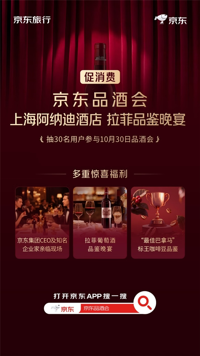 在酒旅市場,京東希望依托自身的供應(yīng)鏈能力,與合作伙伴共同探索新增長通路。6月18日推出“京東酒店P(guān)LUS會員計劃”最高3年0傭金后,9月16日通過京東品酒會IP的打造,創(chuàng)新聯(lián)動酒店和酒品牌,借助京東供應(yīng)鏈優(yōu)勢與酒店供應(yīng)鏈的融合,打造社交新場景,為用戶帶來差異化的住宿新體驗,為酒店帶來新客流。上京東住酒店,品名酒、交朋友。10月30日第二場京東品酒會,京東旅行和大家不見不散。