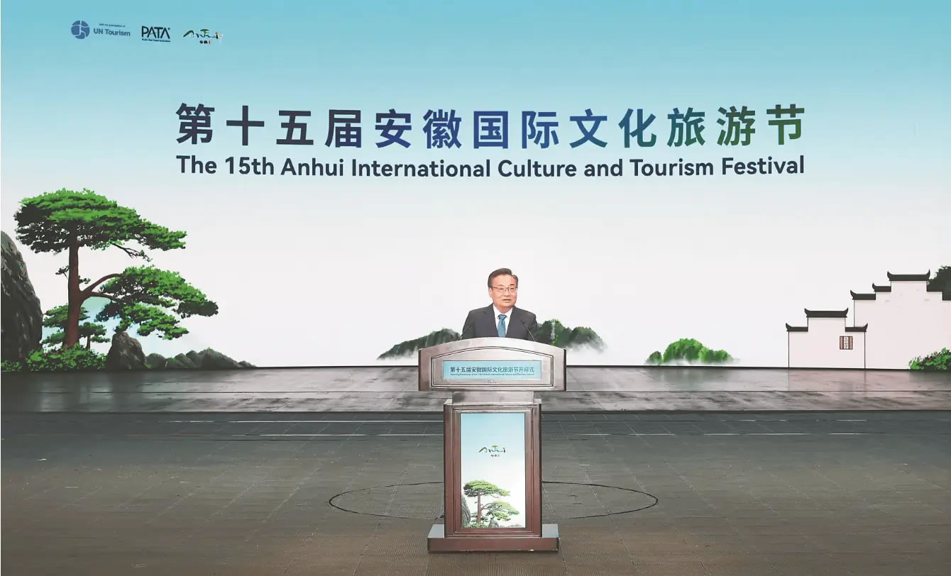 梁言順首先代表省委、省政府向各位嘉賓表示歡迎和感謝。他說,安徽山清水秀、歷史悠久,文化底蘊(yùn)深厚,每一寸土地、每一片山水,都展現(xiàn)出迷人的風(fēng)光、蘊(yùn)藏著動人的故事,山水之韻同人文之勝相得益彰、交相輝映。近年來,我們?nèi)媛鋵?shí)“發(fā)展全域旅游,把文化旅游業(yè)打造成為支柱產(chǎn)業(yè)”的重要指示,堅持以文塑旅、以旅彰文,持續(xù)做好“百業(yè)+文旅”“文旅+百業(yè)”大文章,“美好安徽 迎客天下”的金字招牌擦得更亮。當(dāng)前,安徽正處在夯實(shí)基礎(chǔ)、全面發(fā)力、創(chuàng)先爭優(yōu)、跨越趕超的關(guān)鍵時期。我們將深入學(xué)習(xí)貫徹黨的二十屆四中全會精神,持續(xù)完善政策保障體系,推動文化和旅游業(yè)態(tài)融合、產(chǎn)品融合、市場融合,豐富高品質(zhì)文旅產(chǎn)品供給,打造更多文旅精品,讓海內(nèi)外游客在“詩和遠(yuǎn)方”的雙向奔赴中續(xù)寫新的故事。