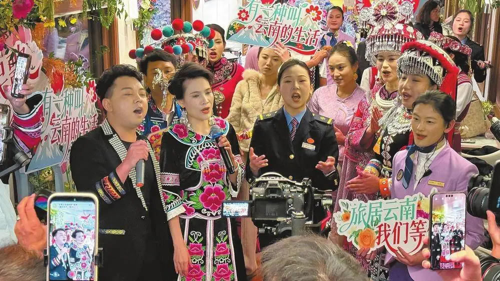 此次推廣活動串聯(lián)起昆明和蒙自,來自云南省花燈劇院、昆明市民族歌舞劇院等團隊的數(shù)十名歌唱演員,在“星光·瀾湄號”列車和蒙自南湖畔,通過“一首民歌、一位歌手、一個推介”的方式,向公眾推薦“坐著火車游云南”的精品線路和特色旅居目的地,將有力提升“來云南、游云南、旅居云南”知名度,為冬季旅游消費市場注入活力。