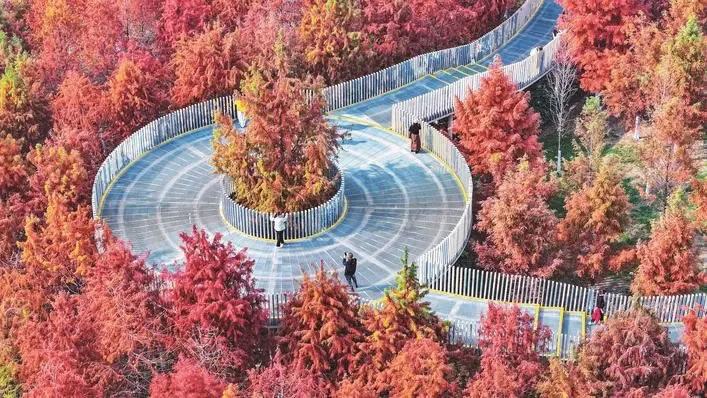 12月15日,漢口常青人才公園,大片火紅的杉樹(shù)林和空中觀景棧道完美適配,隨手一拍都是冬日美圖大片,成為市民熱門(mén)的打卡地。經(jīng)歷上一輪寒潮,武漢水杉、池杉、落羽杉齊刷刷變紅,紅杉進(jìn)入最佳觀賞期。 楚天都市報(bào)極目新聞?dòng)浾呃钶x攝