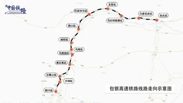 包銀高速鐵路線路走向示意圖