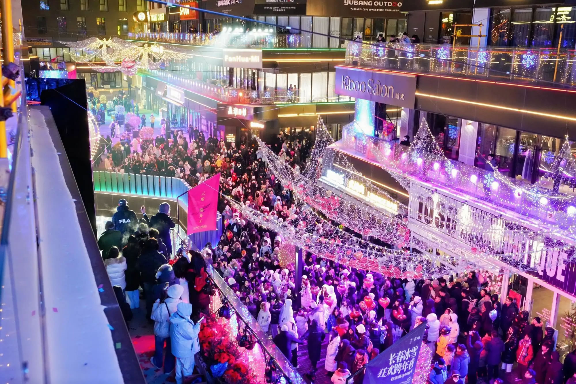 跨年夜當晚,伴隨云瑯冰雪公園亮燈儀式,80萬米流光燈帶在街區(qū)內(nèi)次第點亮,編織出一張貫穿冬夜的光影網(wǎng)絡(luò),打破北方冬季單一的“白色敘事”。青怡坊云瑯籌備了“天幕表白計劃”、露臺音樂“云瑯紅人之夜派對”匯聚青年文化力量,為街區(qū)注入更具當代氣質(zhì)的社交活力。與此同時,邀請百萬級施坦威鋼琴演奏會在街區(qū)空間持續(xù)進行,以克制而純粹的音樂形式,為跨年夜提供一條綿延而持久的時間線索。