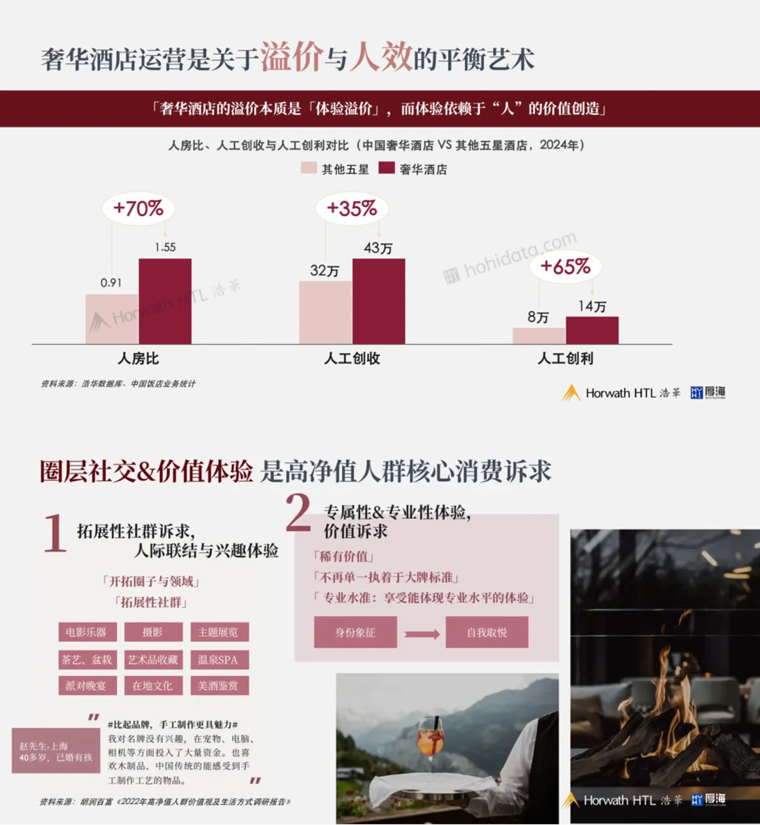 值得注意的是,奢華酒店運(yùn)營本質(zhì)上是溢價(jià)與人效的平衡,而高凈值人群對(duì)圈層社交和獨(dú)特體驗(yàn)的需求,正推動(dòng)高端酒店在場(chǎng)景營造、服務(wù)定制等方面持續(xù)升級(jí)以實(shí)現(xiàn)價(jià)值溢價(jià)。