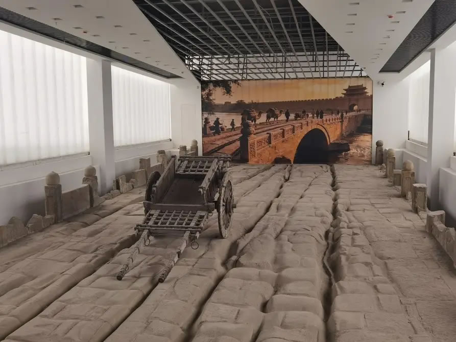 走進(jìn)上下兩層的遺址館,人們?cè)谏蠈涌煽吹芥?zhèn)遠(yuǎn)橋歷經(jīng)數(shù)百年車輪碾壓而形成的車轍。走到下層,一座完整的拱形石橋便立刻躍入眼簾,穿橋洞而過,可近距離欣賞到鎮(zhèn)遠(yuǎn)橋的橋拱、橋磚、橋釘?shù)燃?xì)節(jié)。
