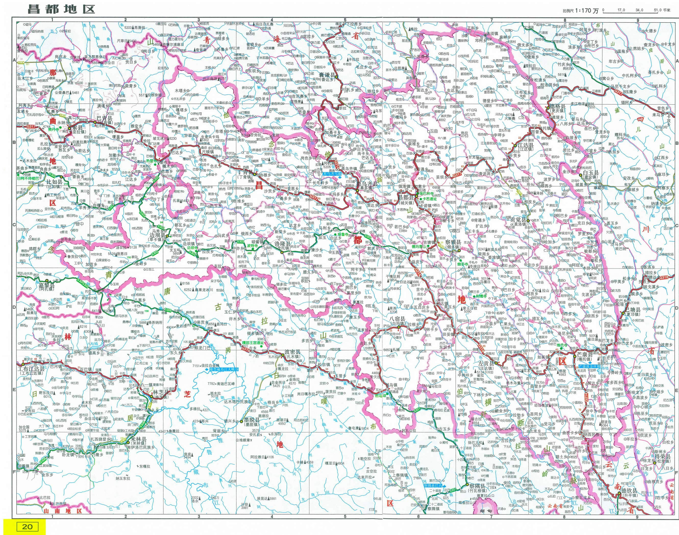 芒康縣 面積11600平方千米,人口79001,政府駐嘎托鎮(zhèn),下轄2個鎮(zhèn)、14個鄉(xiāng)