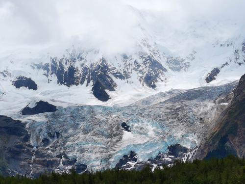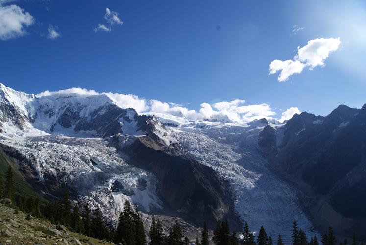 冰川主峰海拔6800米,雪線海拔只有4600米