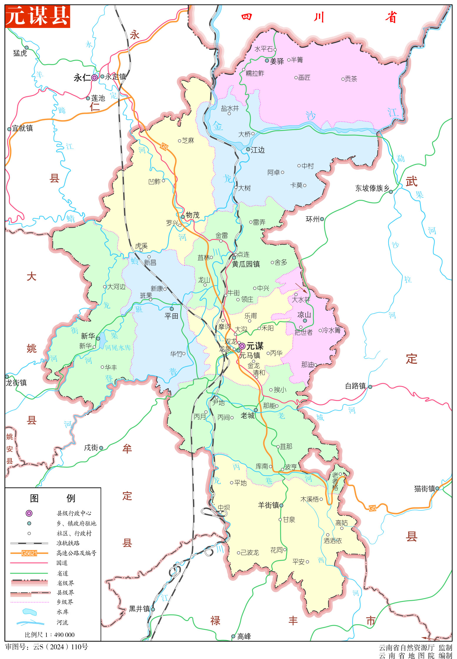 水文 河流屬金沙江水系,常流河19條,季節(jié)河43條。金沙江、永定河北來入境,龍川江南來穿境,蜻蛉河、班果河、動(dòng)崗河西來過境,江河聚會(huì)江邊龍街,匯入金沙江,東北向出境。