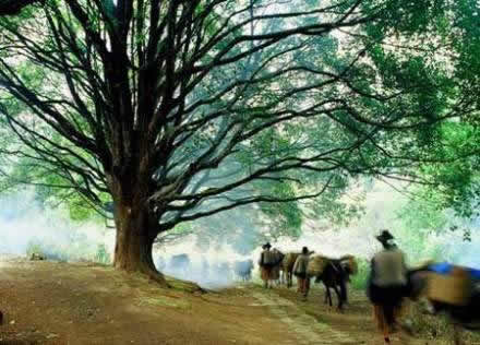 古樹群下,一條歷經(jīng)數(shù)百年滄桑的火山石古驛道蜿蜒西去,與村前的捷報橋相連。一輩輩的和順人先到千手觀音古樹群下許下祈福求財?shù)脑竿,然后從這條古驛道上懷揣著有朝一日能從村口的捷報橋上衣錦還鄉(xiāng)的夢想,開始“走夷方” 。