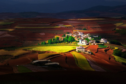 東川紅土地被專家認(rèn)為是全世界除巴西里約熱內(nèi)盧外最有氣勢(shì)的紅土地,而其景象比巴西紅土地更為壯美。東川紅土地指的是位于昆明市東川區(qū)西南40多千米的新田鄉(xiāng)、有一名叫“花石頭”(在109千米程碑處)的地方,這里方圓近百里的區(qū)域是云南紅土高原上最集中、最典型、最具特色的紅土地。