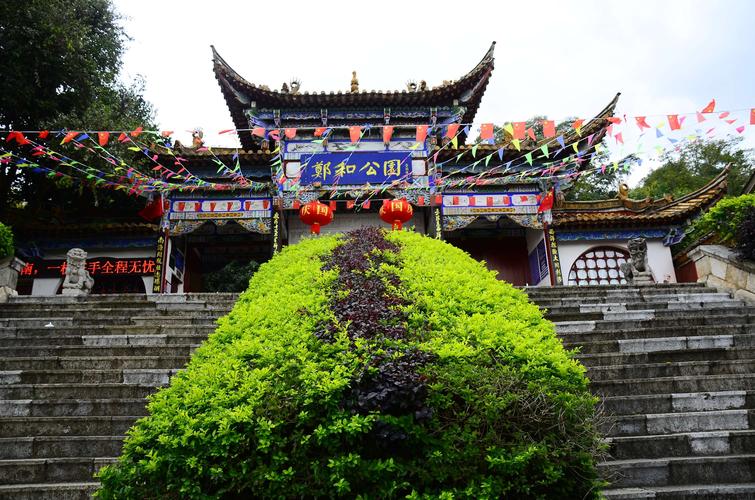 鄭和公園座落在滇池風(fēng)景區(qū)南岸,晉寧區(qū)城的月山上,始建于1978年,原名為月山公園,1980年為了紀(jì)念鄭和,將月山公園更名為“鄭和公園”,占地面積16.67公頃(250畝)。公園以鄭和文化為主題,被列為昆明新十六景之一,名為“月山帆影”,1988年命名為滇池國家重點(diǎn)風(fēng)景名勝區(qū),園內(nèi)主要有鄭和雕像、三寶樓、鄭和碑林、馬哈只墓、鄭和紀(jì)念館、鄭和故居等景點(diǎn)。其中,“馬哈只墓碑”為國家級重點(diǎn)文物保護(hù)單位,“鄭和紀(jì)念館”為云南省首批愛國主義教育基地。