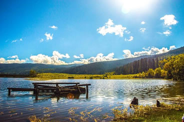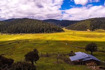 屬都崗湖畔?是香格里拉有名的牧場,這里草場廣闊,水草豐茂,每年春夏之際,成群的牛羊游弋于湖畔,牧棚星星點點置身于湖畔,背負青山,面臨綠水,牛群點點黝黑,牧笛聲聲人耳,讓人深切地感受到高原人閑放、悠游的生活情趣。