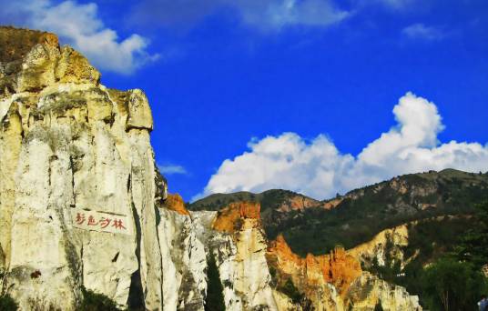 國(guó)家AAAA級(jí)旅游區(qū)——彩色沙林云南省曲靖市南部陸良縣的馬街鎮(zhèn)境內(nèi),占地25平方公里,保護(hù)區(qū)面積52.8平方公里,是云南旅游精品線路上的重要景區(qū),距陸良縣城以南18公里,距石林40公里、昆明130公里、瀘西50公里、羅平96公里,具有優(yōu)越的區(qū)位優(yōu)勢(shì)和便捷的通達(dá)條件。(除此之外,沙林還有很多集科學(xué)和歷史為一體的人文景觀;主要有34個(gè)洞穴構(gòu)成的“洞穴度假村”、“三十六計(jì)洞穴浮雕”、“洞穴舞廳”、“沙地跑馬場(chǎng)”、“古棧道”、“峰火臺(tái)”、“古城堡”、“《爨史》浮雕”、“爨府玄 門”、“文房四寶(石筆、石墨、石硯、石紙)”、“碑林”、“化石門”、“南蠻乾門”、“彝家寨門”、“孟獲寨門”、“孟獲王府”、“沙雕賽區(qū)”、“戰(zhàn)馬坡”、“盤蛇谷”、“蠻王古墓”、“竹園”“千年古藤”、“黑泉”、“挑斷口子”等。)