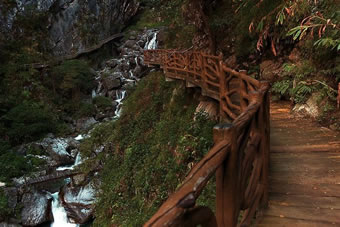 ①步行游路:福緣橋——龍王廟——天開石門——鶴峰亭——五道水服務(wù)區(qū)——枯木要塞——萬獸谷——百步天梯——野生芭蕉林——七道水彩虹橋,全長2500米;