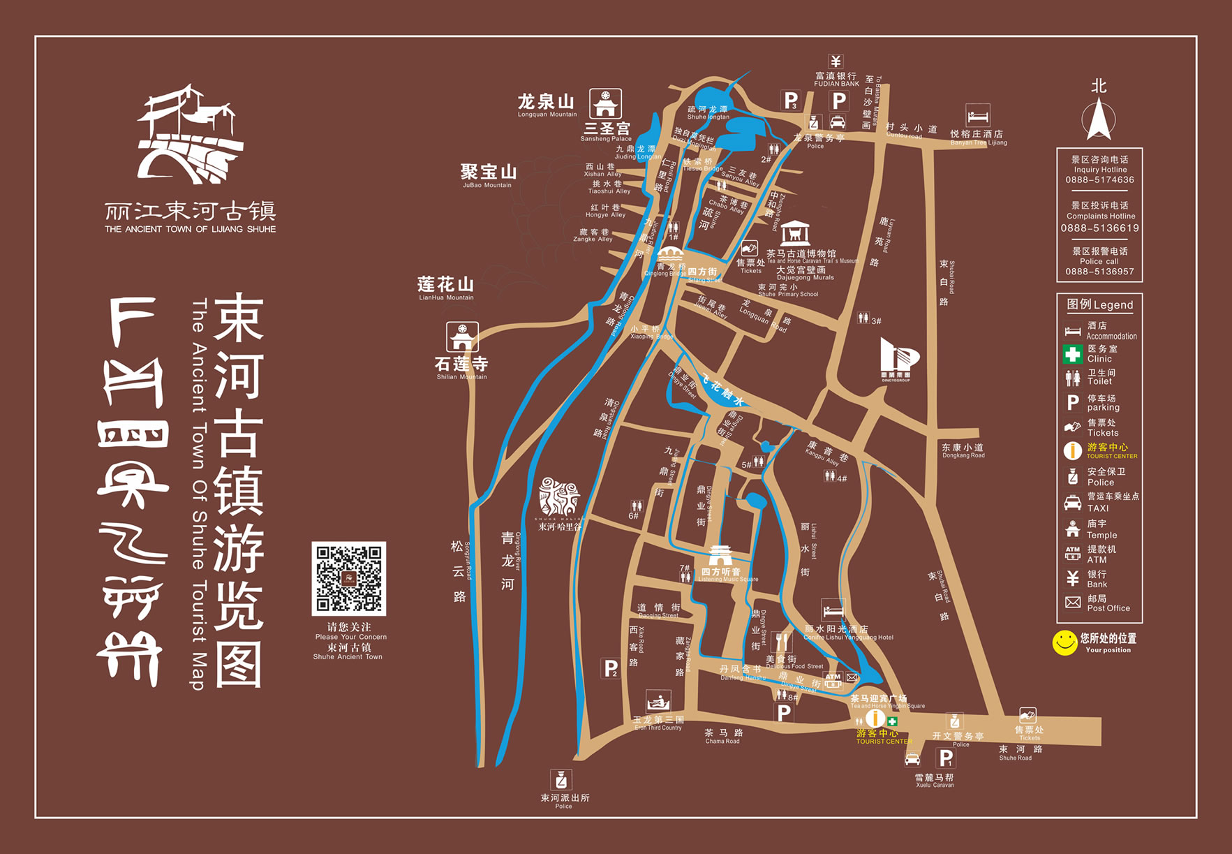 束河坐東朝西,背風向陽,村后山林為玉龍山南下之余脈,山形秀麗,植被茂密,白沙巖腳院有鳳凰山,為麗江木氏發(fā)祥之地,至束河山形再變,呈祥瑞之象,堪輿家稱為“丹鳳含書之地”,預言文化昌盛,興旺發(fā)達。