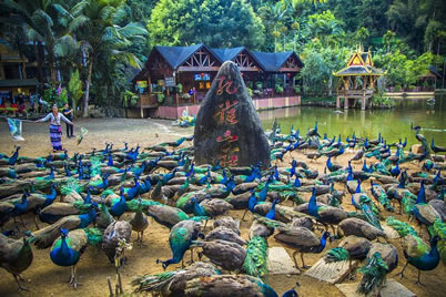 通過漂流,獲得利用自然、征服自然的快慰。此區(qū)還建有一座孔雀園,飼養(yǎng)著400多只綠孔雀,讓人觀賞孔雀開屏,與孔雀留影紀念。西雙版納觀光旅游區(qū),分布有大面積的熱帶溝谷雨林,游客可順游覽道深入西雙版納林中探秘。雨林內有猿猴棲息,有彩蝶繁殖,西雙版納犀鳥、野牛等珍稀動物也偶有出現(xiàn)。幸運的游人會遇到猿猴攀枝嬉戲、西雙版納犀鳥在林中覓食的情景。