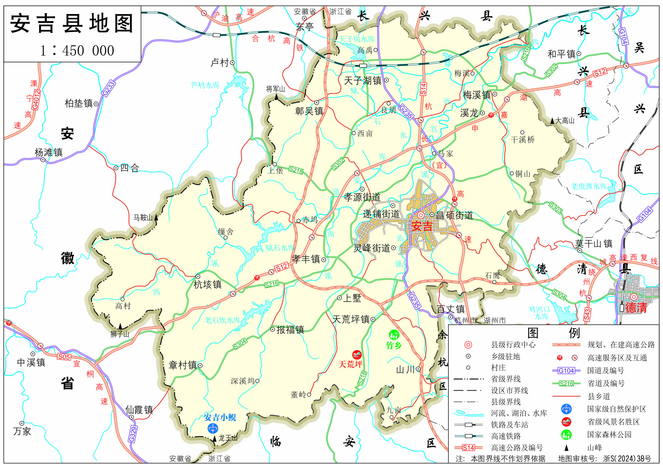鎮(zhèn):遞鋪鎮(zhèn)、孝豐鎮(zhèn)、梅溪鎮(zhèn)、報福鎮(zhèn)、杭垓鎮(zhèn)、良朋鎮(zhèn)、高禹鎮(zhèn)、章村鎮(zhèn)、天荒坪鎮(zhèn)、鄣吳鎮(zhèn)
