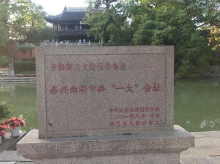 民國10年(1921)8月初,中國共產(chǎn)黨第一次全國代表大會在南湖的一艘游船上閉幕,宣告中國共產(chǎn)黨成立。從此,南湖成為光榮的革命紀(jì)念地,載入了革命史冊。1959年10月1日,南湖革命紀(jì)念館成立,以湖中煙雨樓作為館址,按照當(dāng)年中共“一大”代表乘坐的游船樣式仿制的革命紀(jì)念船,陳列在煙雨樓下萬福橋旁,從那以后,每年有數(shù)十萬游客前來瞻仰,接受革命傳統(tǒng)教育。1985年,鄧小平為南湖革命紀(jì)念館題寫?zhàn)^名。建國以來至1990年,許多黨和國家領(lǐng)導(dǎo)人如董必武、郭沫若等都曾來南湖視察、游覽。
