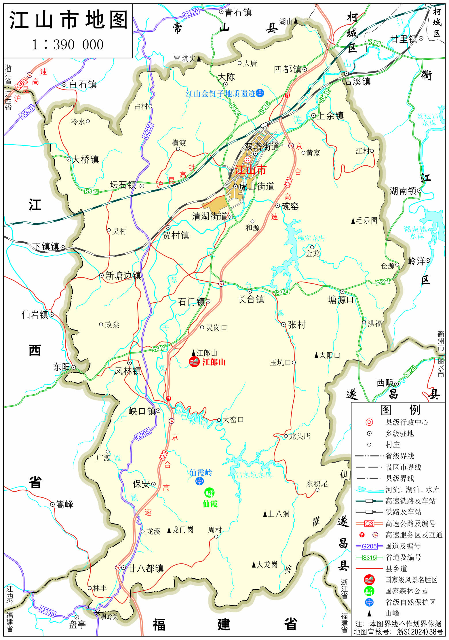 江山市轄2個(gè)街道、13個(gè)鎮(zhèn)、6個(gè)鄉(xiāng):