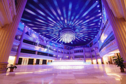 薈萃各式餐飲商品、頂部為一整塊環(huán)繞的天幕,場景逼真宏偉,令游客流連忘返、身心盡娛的時尚消費目的地。