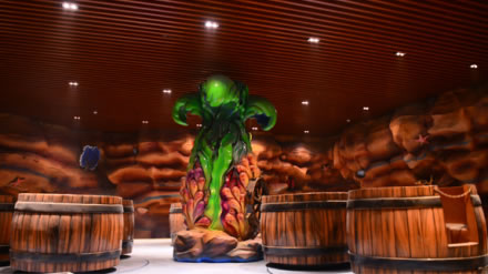 該館的“溶洞真景”位于“山之王國”地下,洞內有石筍、石塔、石花等鐘乳石。此外,“水晶幻境”在燈光的配合之下,形成了溶洞內的獨特景觀。