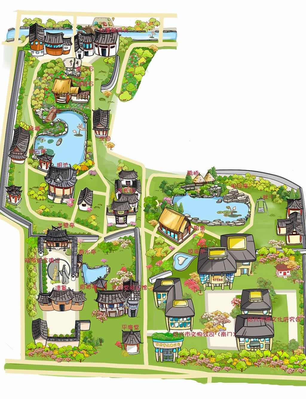 2001年5月,沈園增添新景,主要有陸游紀(jì)念館、連理園、情侶園等三大部分。