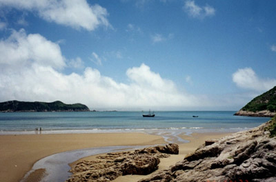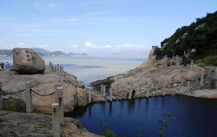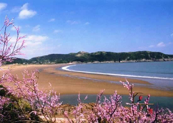 千步金沙——長1370米,寬400余米,從面積來說,是舟山群島第二大沙灘。從沙質(zhì)方面來書是進(jìn)行海浴、沙浴、陽光浴和沙灘漫步較理想、優(yōu)質(zhì)的沙灘。千步金沙屬細(xì)型沙質(zhì),細(xì)軟純凈,與普陀山的白步沙、千步沙和嵊泗的基湖沙灘相比較要細(xì)軟得多,與朱家尖的東沙、南沙相似,但還要松軟一些,且沙灘上沿有部分植被覆蓋,這一點(diǎn)其它沙灘是很難找到的。