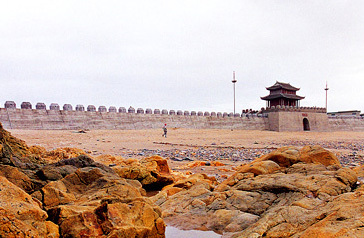 定海城——位于鵓鴣門后門沙灘上,是電影《鴉片戰(zhàn)爭》舟山攝制地主要景點(diǎn)之一,《鴉片戰(zhàn)爭》定海保衛(wèi)戰(zhàn)是整部電影的高潮,戰(zhàn)斗場(chǎng)面悲壯激烈,表現(xiàn)中國人民不屈不撓的精神。整個(gè)城墻長230米,寬12米,最高處12米,設(shè)城樓、古炮位、箭垛、旗桿等設(shè)施,飛檐翅角,黑瓦紅墻,整座城墻古樸典雅,雄偉壯麗。