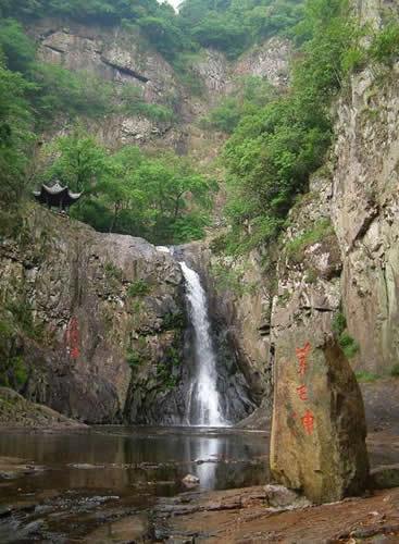 故瀑布下首建的亭名“雙壑亭”。瀑布下長(zhǎng)方形深潭,飛流下墜,水勢(shì)騰涌,明文學(xué)家寧濂《五泄山水志》曰:以線縋之,下不見底,其形方狹而長(zhǎng),天向陰,常有云氣從中起,疑有蛟龍潛其下。