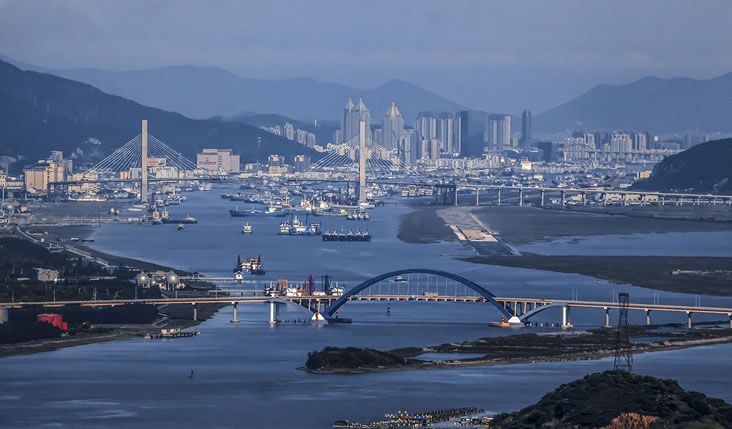 20世紀90年代開始,舟山市開始規(guī)劃大陸連島工程。舟山共建成跨海大橋20余座,這些大橋橫跨于各島之間,成為海島經濟的生命線。1999年9月26日,舟山跨海大橋的第一座大橋岑港大橋正式動工,此后響礁門大橋、桃夭門大橋、西堠門大橋、金塘大橋相繼完工,舟山跨海大橋2009年通車,大陸連島一期、二期工程順利完成。此外東海大橋與2005年正式貫通,打通了舟山嵊泗縣到上海的通道,連接舟山本島和岱山島的舟岱大橋于2021年12月正式通車,六橫跨海大橋等正在建設中。